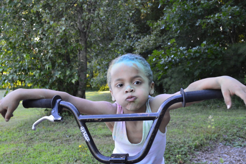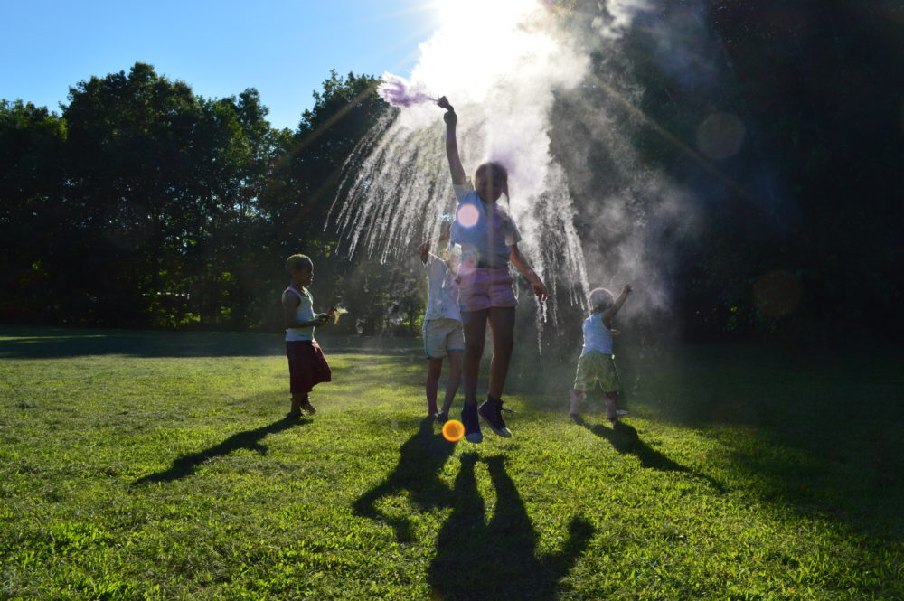 We went to a local park with a big, open field. I divided up our packets – 2-3 per kid – and let them have at it. The big kids used their packets a little faster, so the littles ended up getting less, but they also benefited from the bigs throwing the powder everywhere.